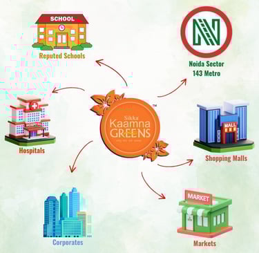 For professionals, the project is surrounded by major corporate hubs including KPMG, Samsung, HCL, TCS, and Wipro, making it an ideal address for a balanced work-life lifestyle. Adding to its charm, iconic landmarks such as Akshardham, Kalindi Kunj, and Mahamaya Flyover are just a short drive away.