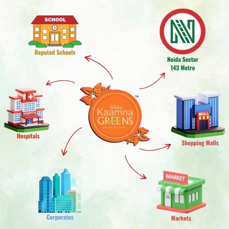 Sikka Kaamna Greens in Sector 143A, Noida offers ready-to-move 2, 3 & 4 BHK flats with modern amenities, prime location near FNG & Noida Expressway, and RERA approval.